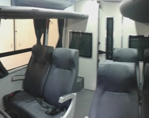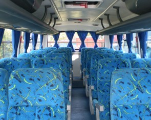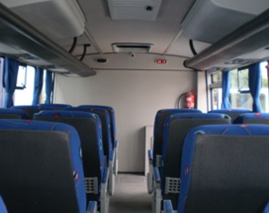 Asientos reclinables tipo Turismo confeccionados en poliuretano inyectado, con cinturones de seguridad.