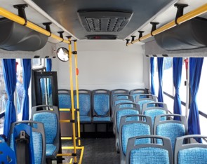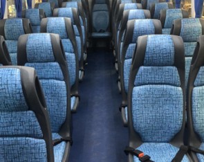 Asientos reclinables tipo Turismo confeccionados en poliuretano inyectado, con cinturones de seguridad.
